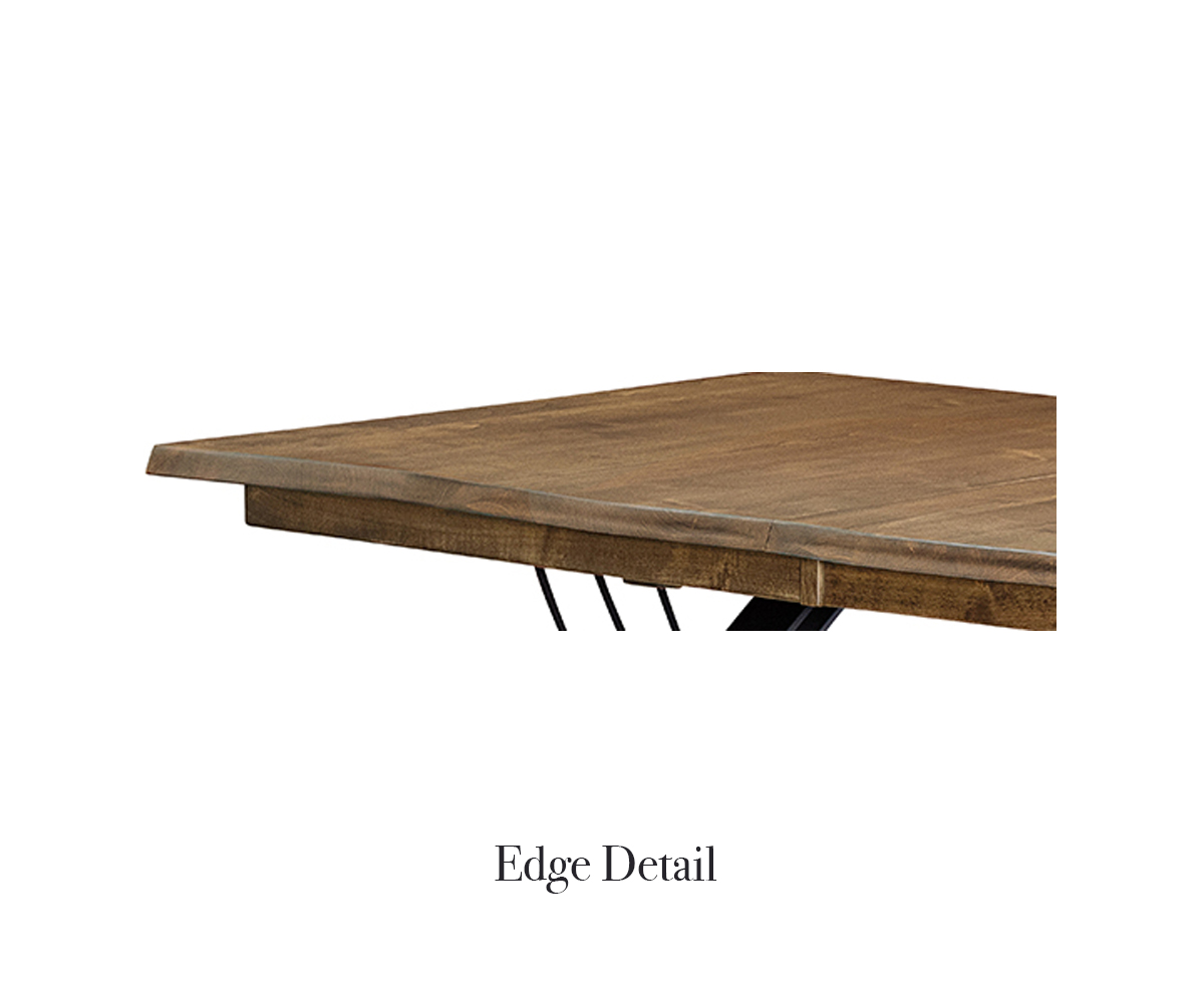 • 1¼” thick table top with a manufactured live edge look
