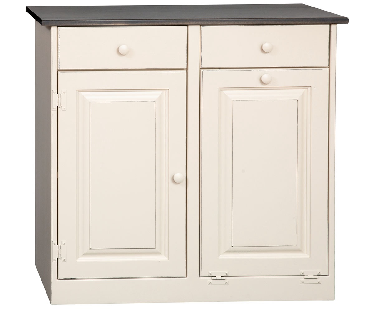 Features: • ¾” wood drawer boxes • Single trash bin flip out • Single cabinet behind one door