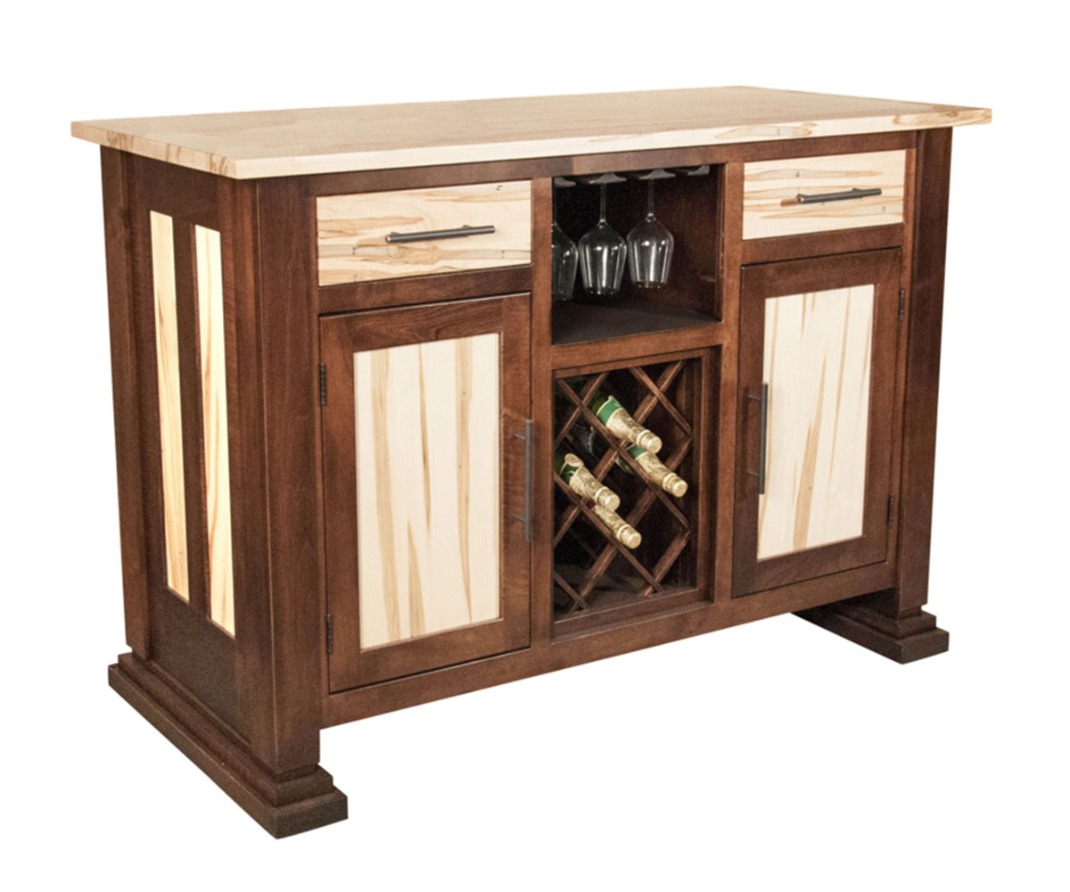 Features: • Dovetailed drawers • Full extension drawer slides • Wine glass holder in the center • Wine rack in the base