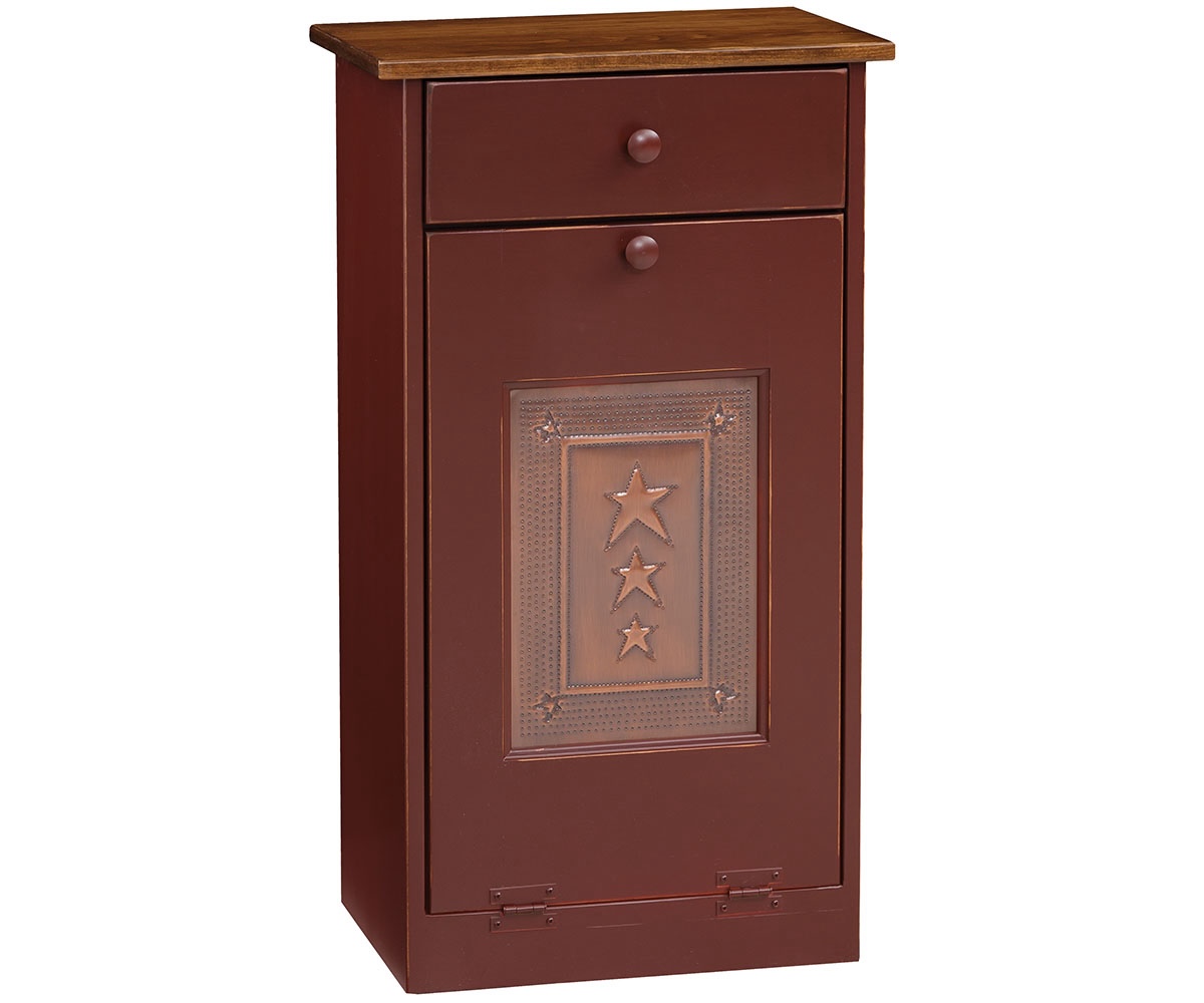 Features: • ¾” wood drawer box • Flip out trash bin • Tin panel on the door